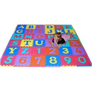 Safe, non-toxic and independently tested FREE of Lead, BPA's and PVC. Exposure to letters and numbers influences learning. The individual 12" foam squares are colorful, washable and provide a cushioned surface. It includes 26 letters and 10 numbers that pop out for hours of learning fun. Straight borders included give the mat a finished look. It covers up to 36 sq. ft., 6' x 6' area and made of high density EVA foam 10mm, 3/8 inch thick. The letters and numbers do pop out of the tiles. This item is not recommended for use on carpets. For ages 3 and older.